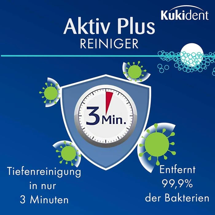 Hinweis: Gebissreiniger vorsichtig verwenden. Vor Gebrauch stets Etikett und Produktinformationen lesen.